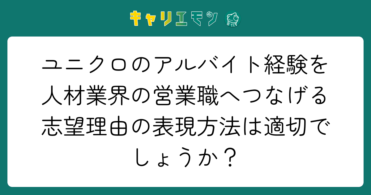 ユニクロのアルバイト経験を人材業界の営業職へつなげる志望理由の表現方法は適切でしょうか?
